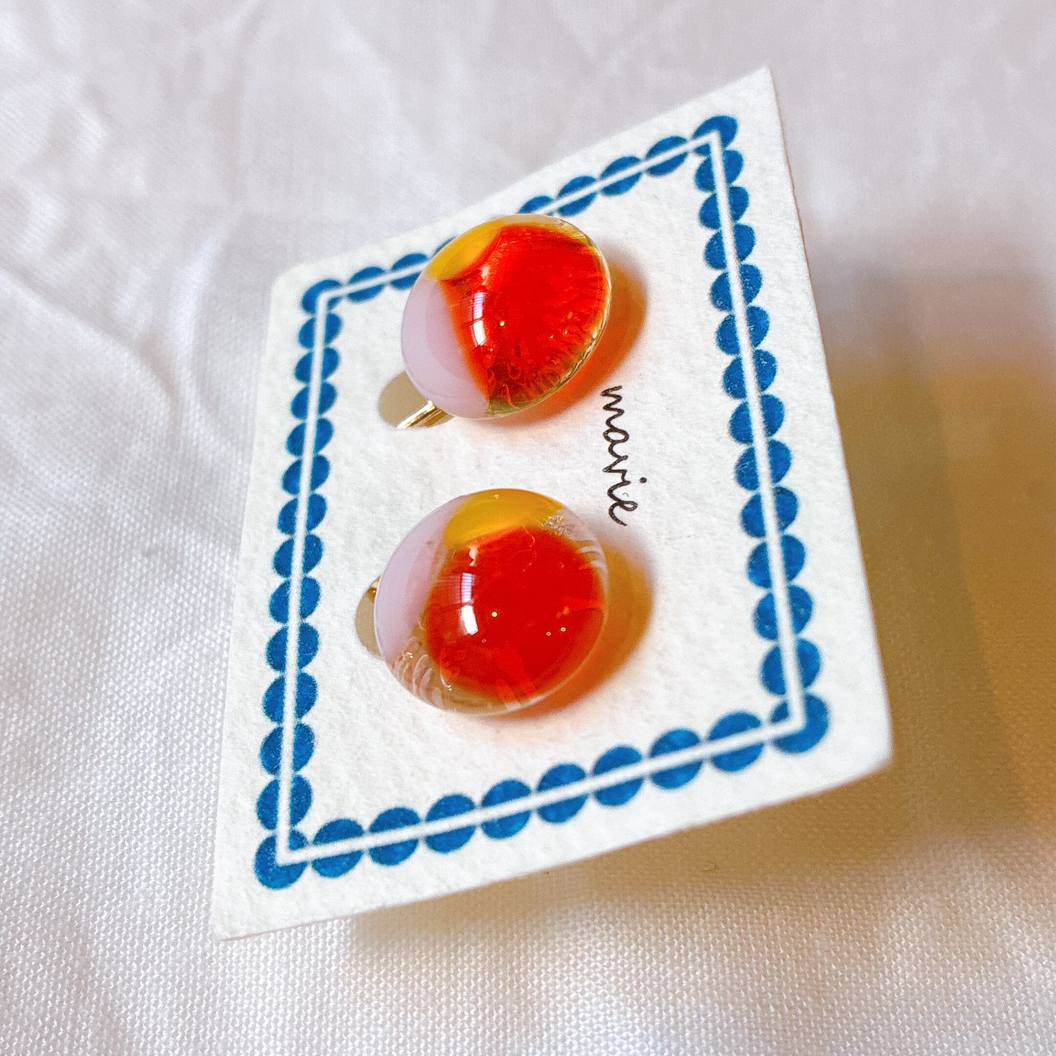 ガラスのイヤリング/クリアレッド×イエロー×ピンク