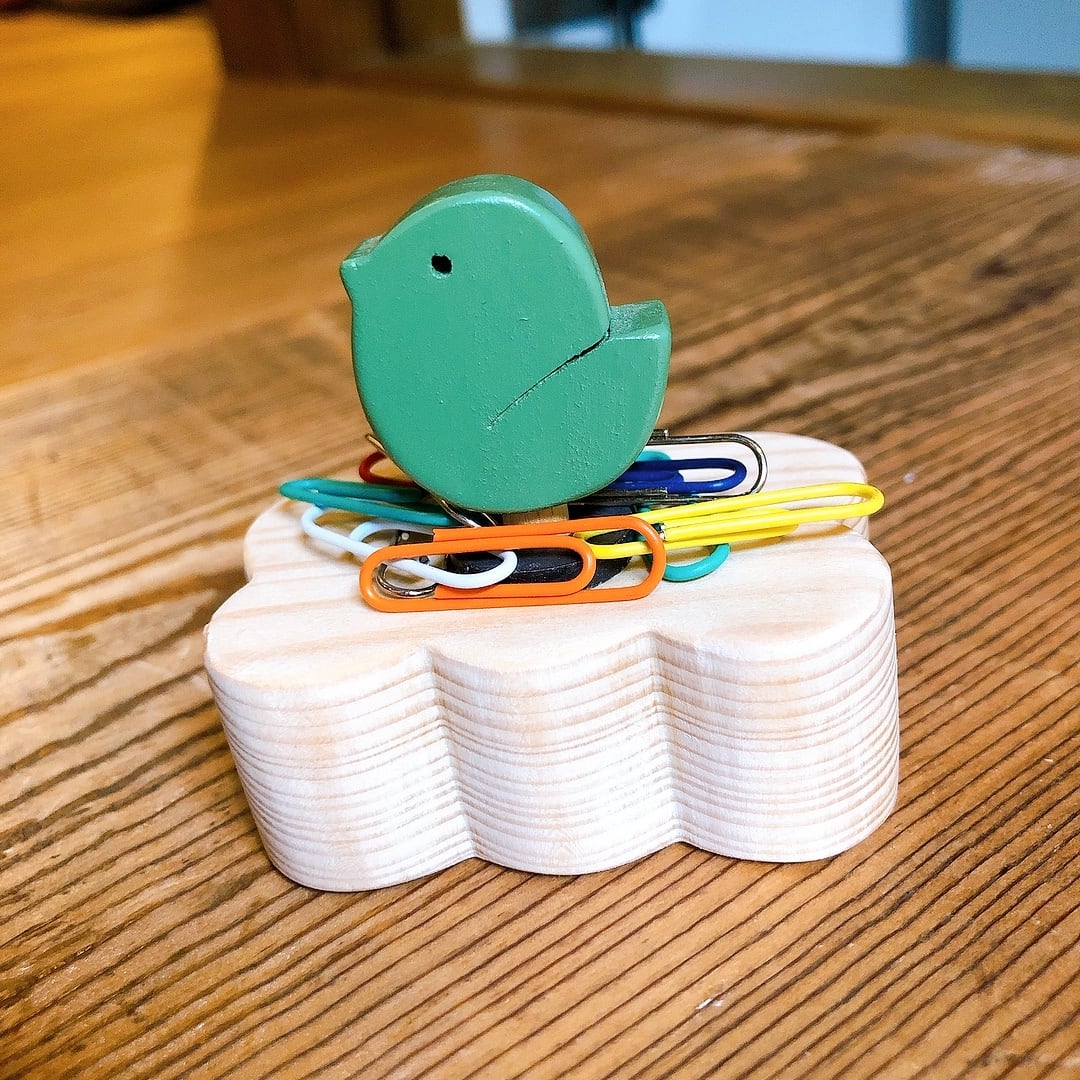 ことりの巣【グリーン】輪ゴムクリップホルダー/埼玉県産ひのき