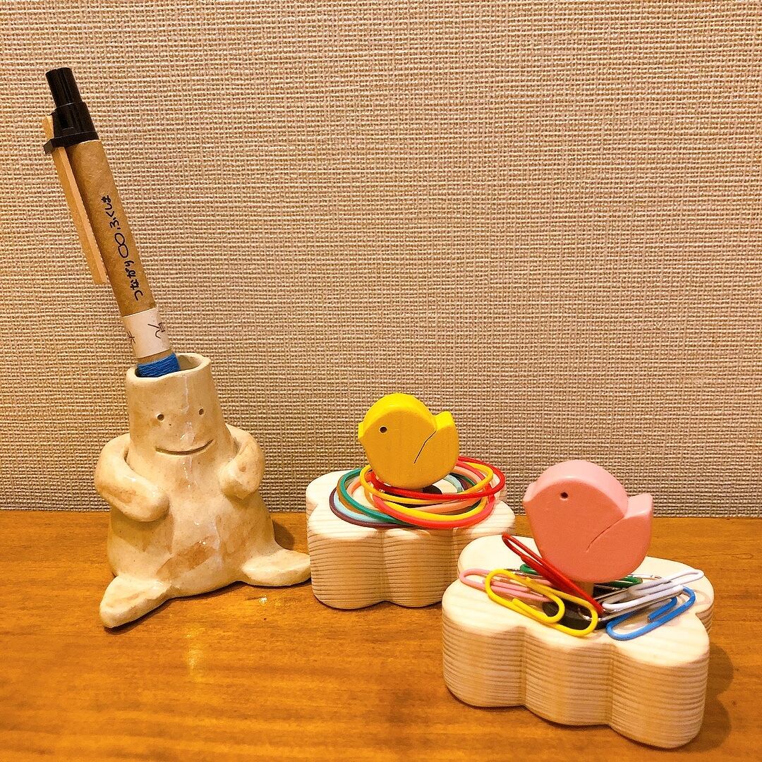 小鳥が巣に物を集めるように、輪ゴムやクリップを収納してくれます。
